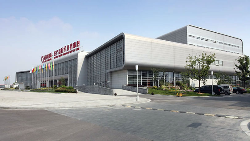 上海西郊國際農產品展銷中心位于上海青浦華新鎮,毗鄰虹橋樞紐中心,背依京滬高速,東臨沈海高速,交通運輸條件便利,該中心占地60畝,建筑面積4萬多平方米。建設目的是為全國農產品大市場、大流通服務。2009年建成。采用鍍鋁鋅