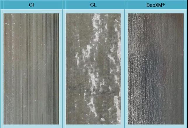 BaoXM®鍍層耐蝕性受切口影響最小,切口耐蝕性較GI、GL更為優異。