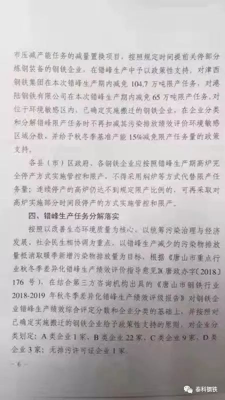 日前,唐山市2018-2019年秋冬季鋼鐵行業(yè)錯峰生產(chǎn)方案經(jīng)過市政府15屆17次常務會議審議通過,主要內(nèi)容為:分類執(zhí)行,對提前關停部分煉鋼設備的津西鋼鐵和港陸鋼鐵將分別減免104.7萬噸、65萬噸限產(chǎn)任務。