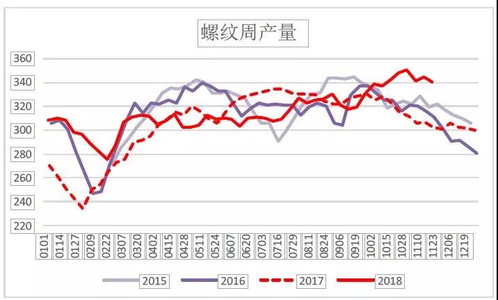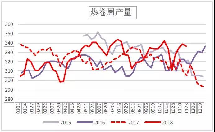 螺紋、熱軋周產(chǎn)量變化